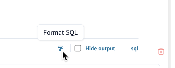Click on the paint roller icon at the bottom right of the SQL cell to format your SQL code.